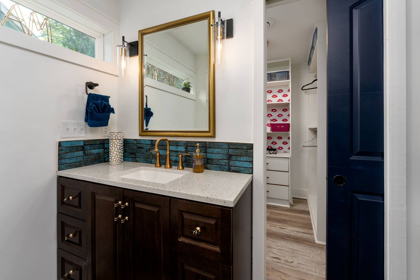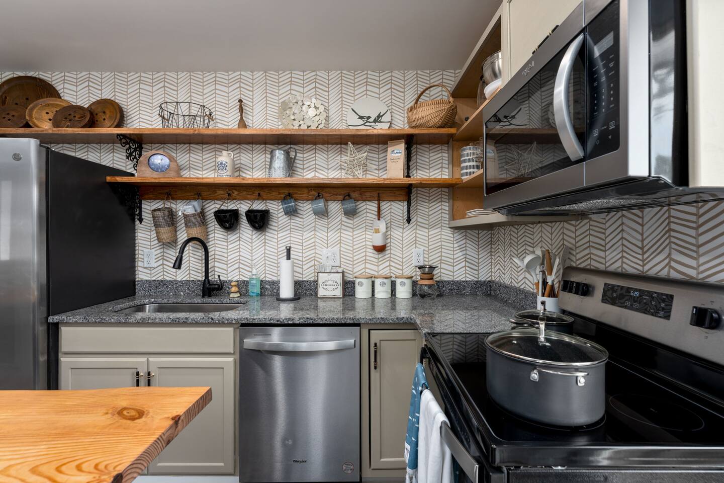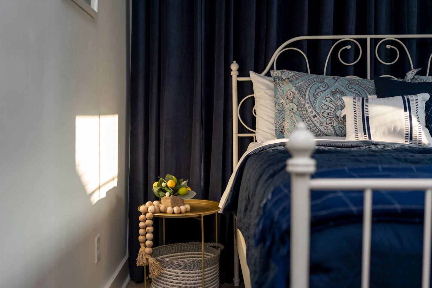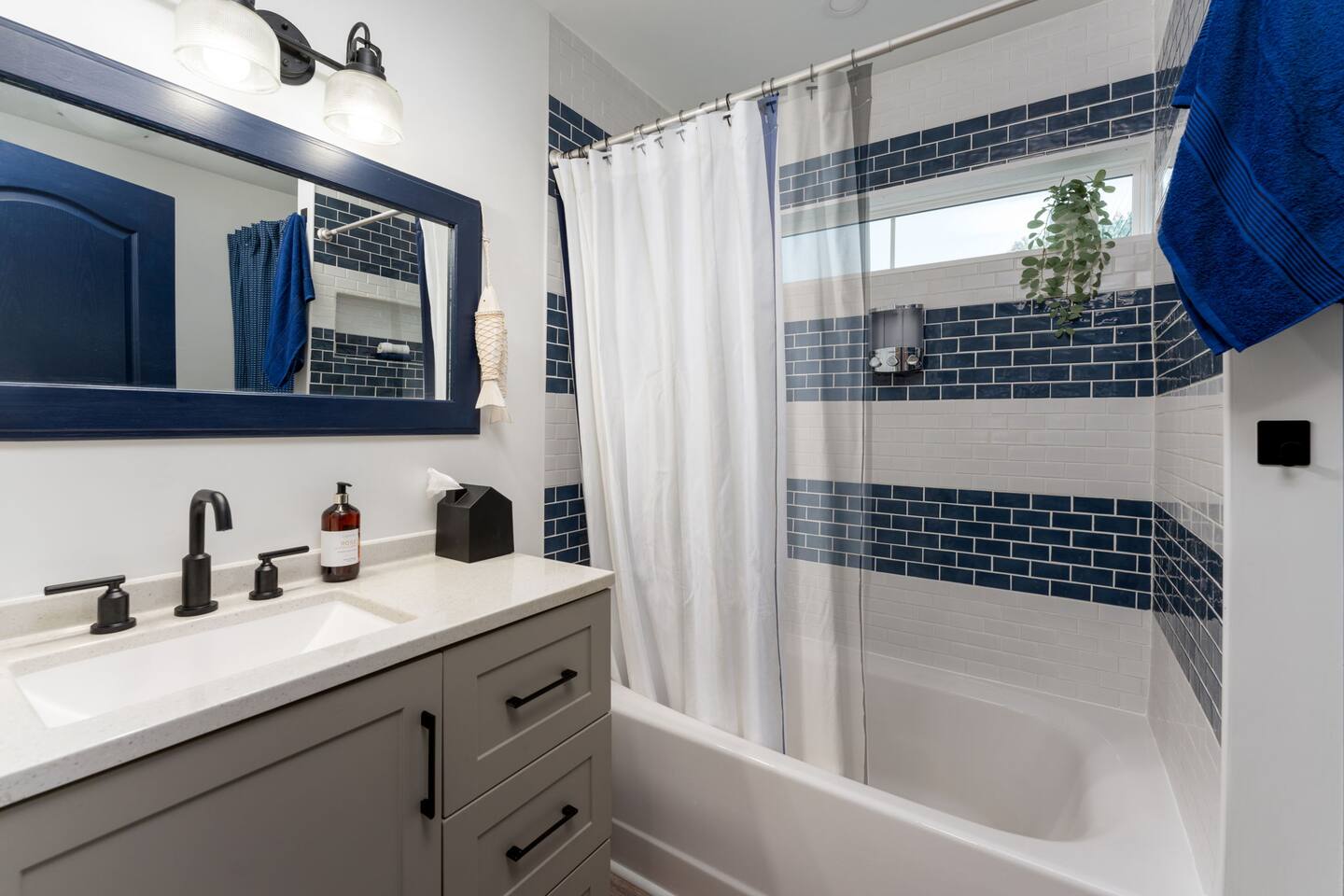 ➝ 2 bedrooms | 2 bathrooms | Sleeps 4 ➝ Stylish interior with modern and retro design elements ➝ Smart TV with soundbar & high-speed Wi-Fi ➝ Fully equipped kitchen with full-size appliances ➝ Private fenced backyard | Pet-friendly ➝ Free street parking | Walkable neighborhood Bedroom 1 Queen bed with plush bedding and calming décor. Ideal for restful nights and quiet mornings. Bedroom 2 Queen bed with cozy finishes and natural light. A comfortable setup for couples or friends traveling together. Bathroom 1 Walk-in shower with fresh towels and essentials. Designed for quick mornings or relaxing evening routines. Bathroom 2 Tub/shower combo with clean, modern finishes. A convenient option for longer stays or shared use. Living Room Comfortable seating and a Smart TV with soundbar for streaming and downtime. A cozy space to unwind after a day downtown. Kitchen Fully equipped with stove, oven, refrigerator, and cookware. Perfect for easy breakfasts, home-cooked meals, or takeout nights in. Outdoor Space ➝ Private fenced backyard for relaxing or pet play ➝ Front porch seating to enjoy the neighborhood atmosphere Location & Access ➝ 10-min walk to Live Oak Bank Pavilion ➝ 15-min walk to downtown Wilmington & Riverwalk ➝ 8-min drive to Wilmington International Airport ➝ 20-min drive to Wrightsville Beach ➝ Minutes to the Wilmington Convention Center