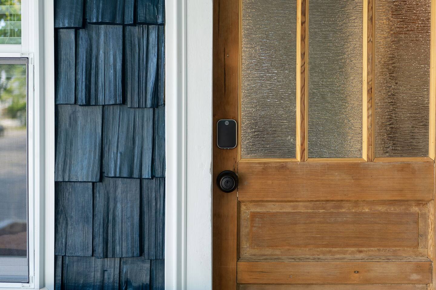Enter through the front door by touching the Yale lock once. Your unique code will be in the check instructions. The rear electric lock does not have a passcode set and can only be unlocked by locking the dead bolt.
