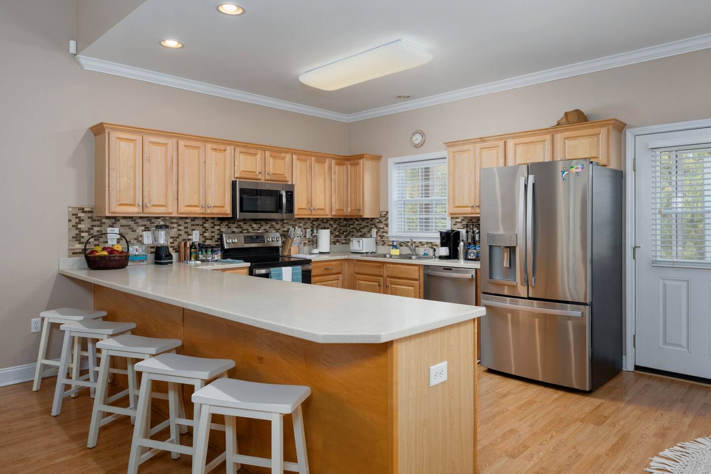 Welcome to Lost & Found at the Beach Whether you’re savoring morning coffee on the breezy front porch, gathering for sunset chats in the cozy living room, or whipping up a feast in the chef-inspired kitchen, you’ll feel like you’ve found your perfect beach retreat. Designed with comfort and connection in mind, Lost & Found at the Beach offers space for up to 10 guests to relax, recharge, and make unforgettable memories. Plus, with a golf cart included for easy beach trips and local exploring, your getaway just got even better! Book now to experience the best of Oak Island in a home that feels like it was made just for you. ☆☆ BEDROOMS ☆☆ ➝ Bedroom 1: 1 King Bed ➝ Bedroom 2: 1 King Bed ➝ Bedroom 3: 1 Queen Bed ➝ Bedroom 4: 2 Twin Beds ➝ Living Room: Pull-Out Sofa Bed With four beautifully appointed bedrooms and additional sleeping space in the living room, this home comfortably sleeps up to 10 guests. The two king bedrooms are pure luxury, featuring plush bedding and a calming coastal design. The queen bedroom offers a cozy, serene escape, while the twin room is perfect for kids or friends. Need extra space? The living room’s pull-out sofa bed adds flexibility for larger groups. ☆☆ BATHROOMS ☆☆ ➝ 2 Full Bathrooms ➝ 1 Half Bathroom Downstairs Clean, bright, and thoughtfully stocked, the bathrooms offer plenty of space for your group. Fresh towels, premium toiletries, and a relaxing atmosphere ensure you’ll feel refreshed after a long day at the beach. ☆☆ KITCHEN & LIVING ROOM ☆☆ Here’s where Lost & Found at the Beach truly shines. The owner, with years of experience in the high-end restaurant world, has crafted a kitchen that’s more than just functional—it’s a culinary playground. This fully equipped space features top-notch appliances, high-quality cookware, and everything you need to create unforgettable meals. Whether you’re a seasoned chef or just love gathering around good food, you’ll feel inspired here. The open-concept living room is made for connection. Sink into cozy seating, stream your favorite shows on the smart TV, or share stories from your day at the beach. It’s the perfect spot to relax, laugh, and enjoy the company of family and friends. ☆☆ OUTSIDE SPACE & AMENITIES ☆☆ Step outside to your private outdoor haven. The fenced backyard is perfect for morning coffee, evening cocktails, or simply soaking up the Oak Island breeze. Fire up the grill for a family barbecue, lounge with a good book, or watch the kids play while you unwind. Amenities Included: ✔ Golf Cart (with free parking) for easy beach trips - Electric Bikes x2 (Helmets provided) ✔ Cornhole for some friendly competition ✔ Bikes to explore the island at your own pace ✔ Outdoor Fire Pit for cozy nights under the stars ✔ Outdoor Seating to relax and enjoy the fresh ocean air HOME DISTANCE IN MILES FROM: ➝ Oak Island Beach Access: 0.5 miles ➝ Oak Island Nature Center: 1.2 miles ➝ Middleton Park: 1.5 miles ➝ Local Shops & Restaurants: 0.3–0.8 miles ➝ Southport Ferry Terminal: 7 miles ➝ Wilmington International Airport (ILM): 35 miles Lost & Found at the Beach isn’t just a place to stay—it’s a place to gather, connect, and create memories. With space for 10, a chef-inspired kitchen, a convenient half bath downstairs, a golf cart, and cozy coastal charm, it’s the perfect backdrop for your next adventure. Your beach getaway is waiting. Are you ready to find it?