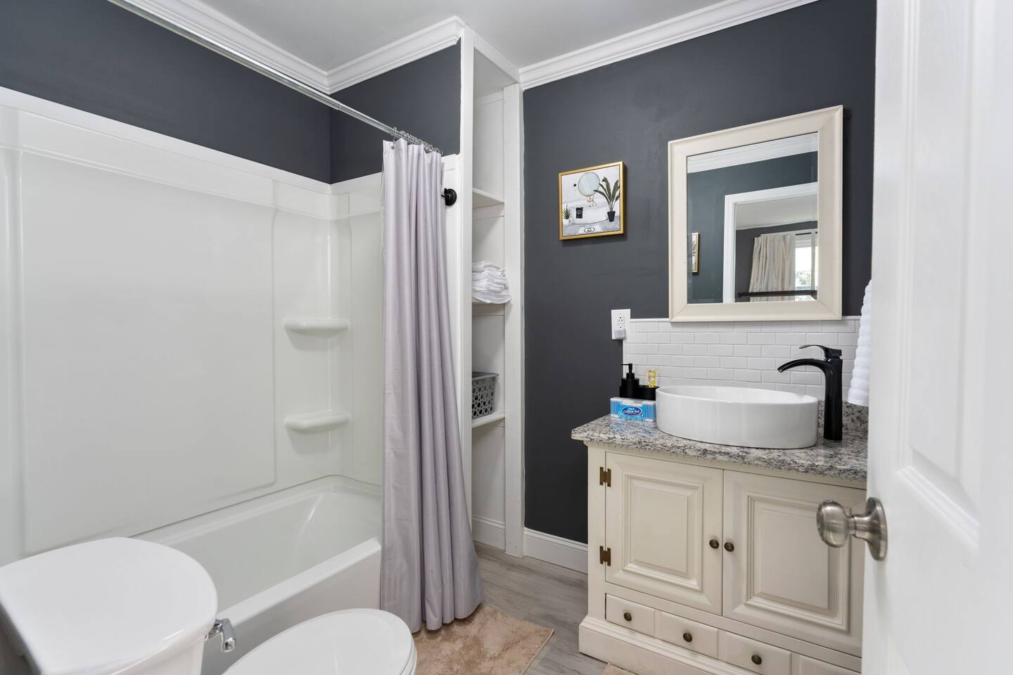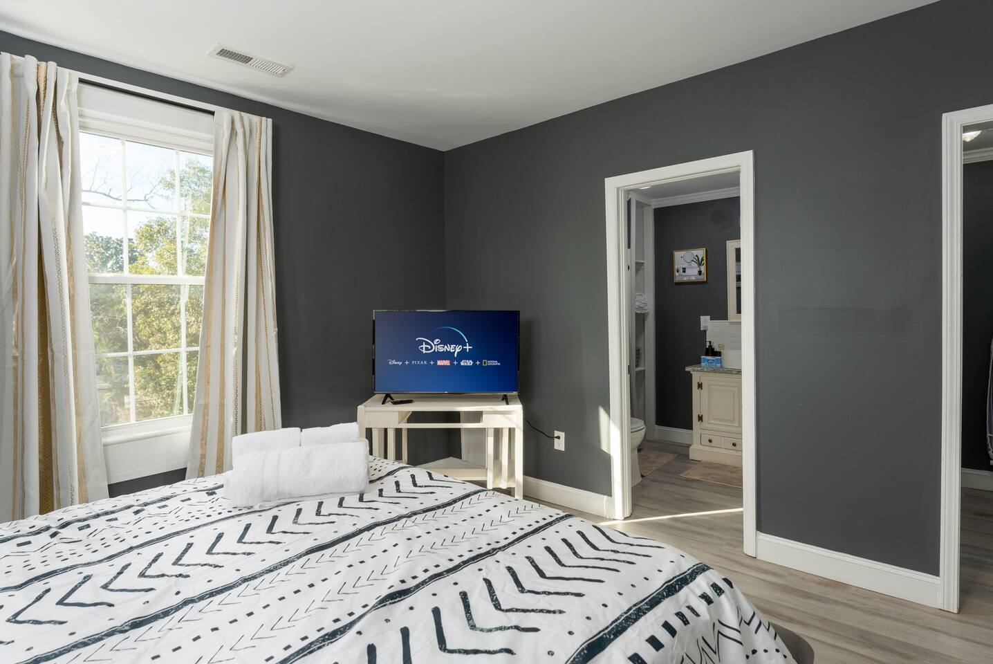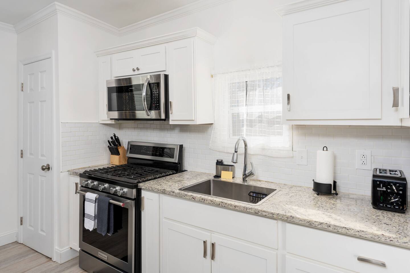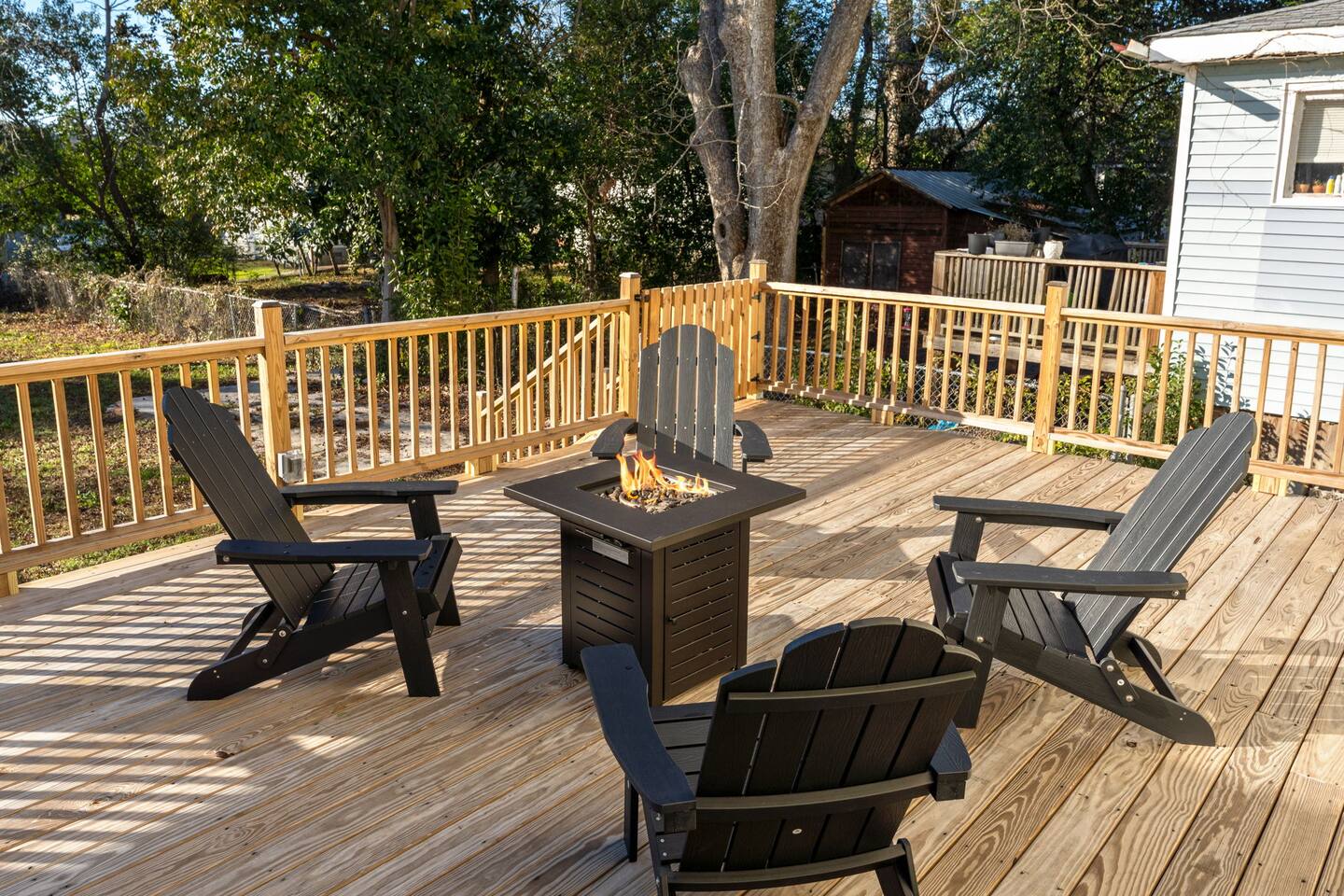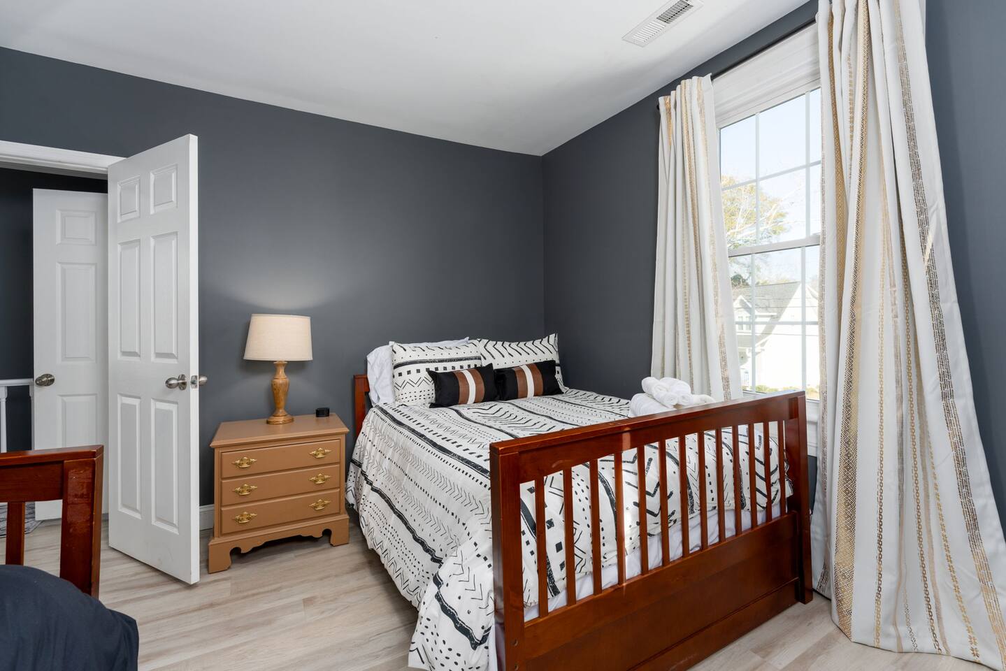 ☆☆ BEDROOMS ☆☆ ➝ Bedroom 1 (Primary Suite): This spacious and serene bedroom features a comfortable queen-sized bed with plush linens and a cozy duvet. Located upstairs, it offers privacy and is perfect for unwinding after a day of exploring. Ample closet space and a bedside table with reading lamps complete the room's functionality and charm. ➝ Bedroom 2: Bright and inviting, this room is furnished with two twin beds, each outfitted with soft bedding and fluffy pillows. The layout makes it ideal for children, friends, or siblings traveling together. A large window provides plenty of natural light, and a dresser ensures space for personal belongings. ➝ Bedroom 3: Perfect for a small family or a group of friends, this versatile bedroom includes a full-sized bed and an additional twin bed. Both beds are adorned with high-quality linens, making it a cozy space for relaxation. The room also features a bedside table, reading lamp, and a closet for convenience. ☆☆ BATHROOMS ☆☆ ➝ Bathroom 1 (Ensuite in Bedroom 1): This private ensuite bathroom, located within the primary bedroom, features a relaxing tub/shower combination, making it perfect for a soothing soak or a quick rinse. Elegant tile work and bright lighting create a serene atmosphere, while the spacious vanity provides ample room for your toiletries. Complimentary essentials such as shampoo, conditioner, body wash, and fresh towels are included to make your stay comfortable and convenient. ➝ Bathroom 2 (Shared Upstairs): Also located upstairs, this shared full bathroom features a tub/shower combination, ideal for guests who enjoy a relaxing bath or a refreshing shower. The bathroom is thoughtfully designed with modern fixtures, a large mirror, and a well-lit vanity with plenty of counter space. As with the ensuite, this bathroom is stocked with toiletries and fresh linens for your convenience. ☆☆ KITCHEN & LIVING ROOM ☆☆ The living room is spacious and designed for comfort, offering a perfect space to relax after a day of exploring Wilmington. Large windows let in plenty of natural light, creating a warm and inviting atmosphere. The fully equipped kitchen features dinnerware, utensils, and all cooking essentials, including pots, pans, and basic spices. Whether you’re brewing morning coffee or preparing a family feast, this space has you covered! ☆☆ OUTSIDE SPACE ☆☆ Step into your own private oasis! The backyard offers a cozy deck perfect for enjoying your morning coffee or hosting an evening by the fire. Surrounded by mature trees, the space feels peaceful and secluded despite being in the heart of Wilmington. ☆☆ HOME DISTANCE IN MILES & TIME ☆☆ This charming home is ideally located for travelers looking to explore Wilmington’s vibrant attractions and natural beauty. ➝ Wilmington Int'l Airport (ILM): 4.2 miles, approximately 10 minutes by car ➝ Downtown Wilmington: 1 mile, approximately 5 minutes by car or 15 minutes on foot ➝ Live Oak Bank Pavilion: 1.2 miles, approximately 5 minutes by car or 20 minutes on foot ➝ Wrightsville Beach: 10.9 miles, approximately 20 minutes by car ➝ Wilmington Convention Center: 1.5 miles, approximately 5 minutes by car or 20 minutes on foot ➝ Battleship North Carolina: 3.2 miles, approximately 10 minutes by car ➝ Cargo District: 0.8 miles, approximately 3 minutes by car or 10 minutes on foot